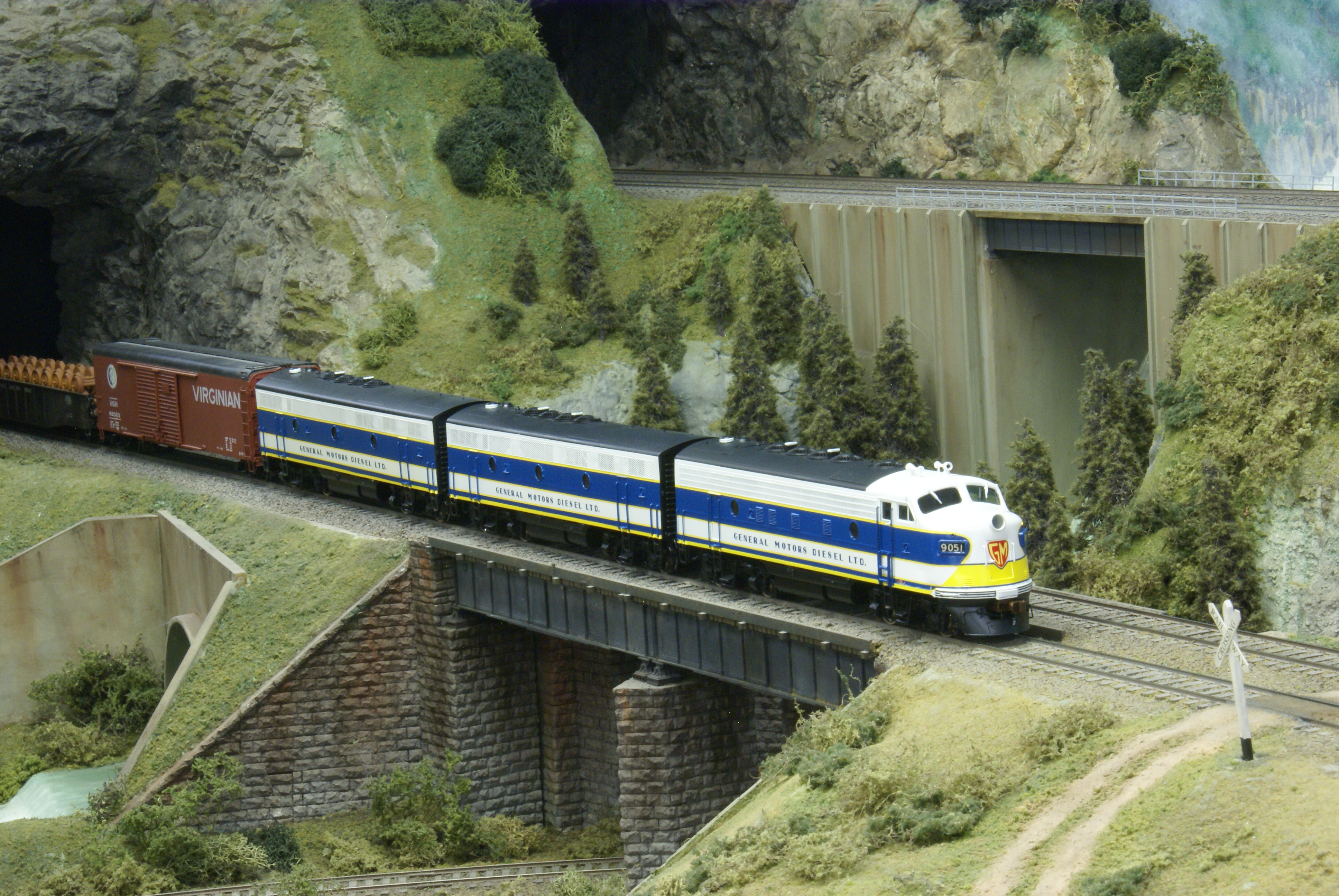 Although the NEW YORK CENTRAL Valley Division represents the 1948-1958 decade, there is also a desire to venture outside the rigid box of truly authentic modeling. The release of some spectacular modern diesels stimulated creation of the mythical MUSEUM OF RAILROAD FUTURE (MORF) which is focused on rolling stock envisioned to be common at some point in the future. From time to time, the MORF operates futuristic engines and rolling stock to provide inspiration of what is yet to come. It is purely coincidental that one MORF train runs around at the end of each op session. A grand finale if there ever was one.