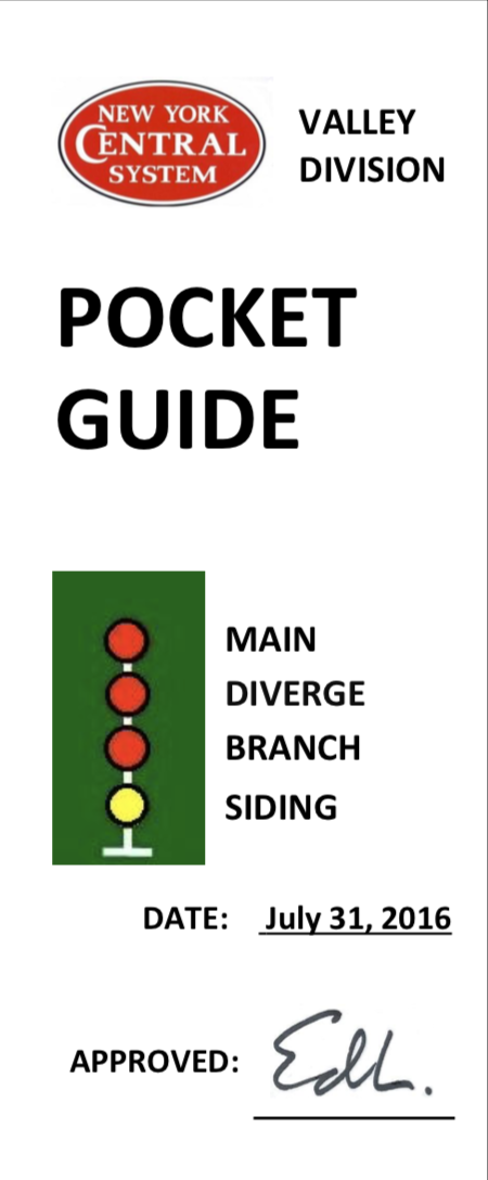 Signals are not always well understood by model railroaders. The various color combinations and terminology can be confusing at first. As with real railroads, each model railroad uses signals a bit differently and there is no industry standard which applies uniformly to all layouts. Information regarding the NEW YORK CENTRAL Valley Division’s signal system is provided here for your education. This material is duplicated in the POCKET GUIDE which is provided to road crews when they operate a train. Perfect memory is not required, but is very helpful. Collision avoidance is the goal and understanding the signaling system is the only way to operate safely.